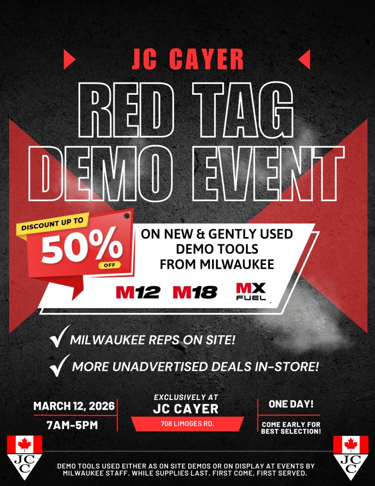 - Outils neufs (sortis de la boîte) ou légèrement utilisés présentés lors d’événements ou utilisés par les représentants Milwaukee Tool pour des démonstrations sur le chantier